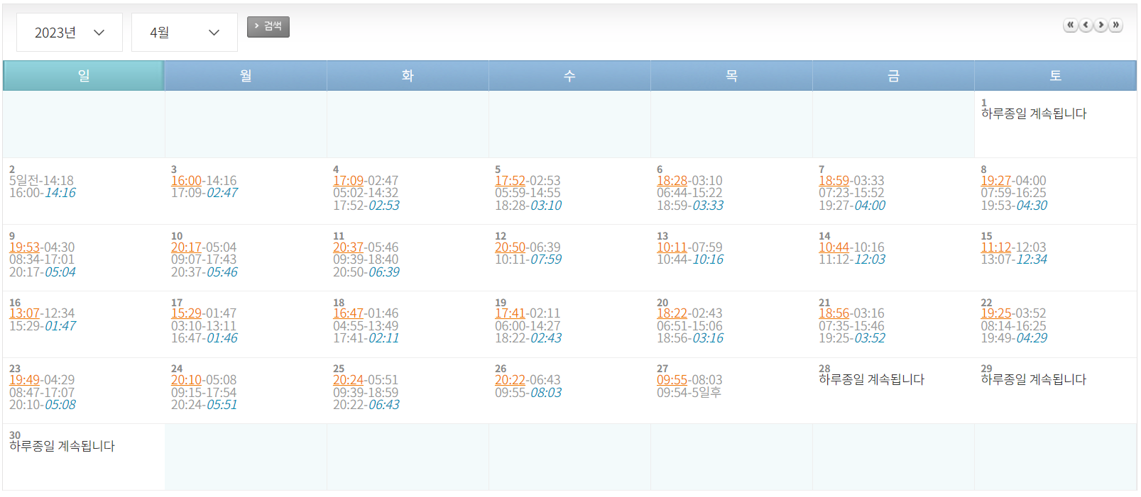 아래 시간표는 해양 조사원의 정확한 자료를 바탕으로 구성되어 있어, 정확도가 뛰어납니다.